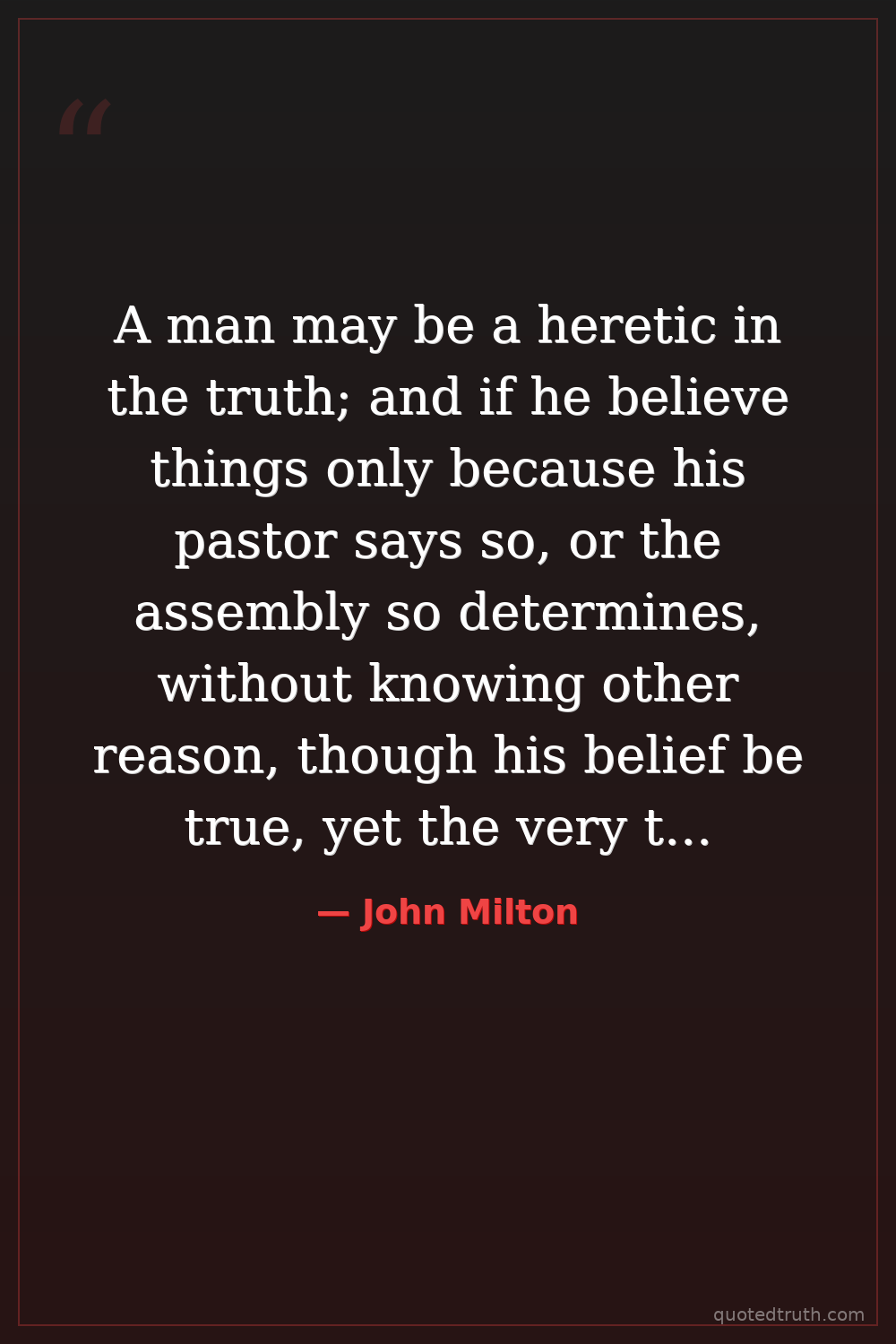 A man may be a heretic in the truth; and if he believe things only because his pastor says so, or the assembly so determines, without knowing other reason, though his belief be true, yet the very truth he holds becomes his heresy.