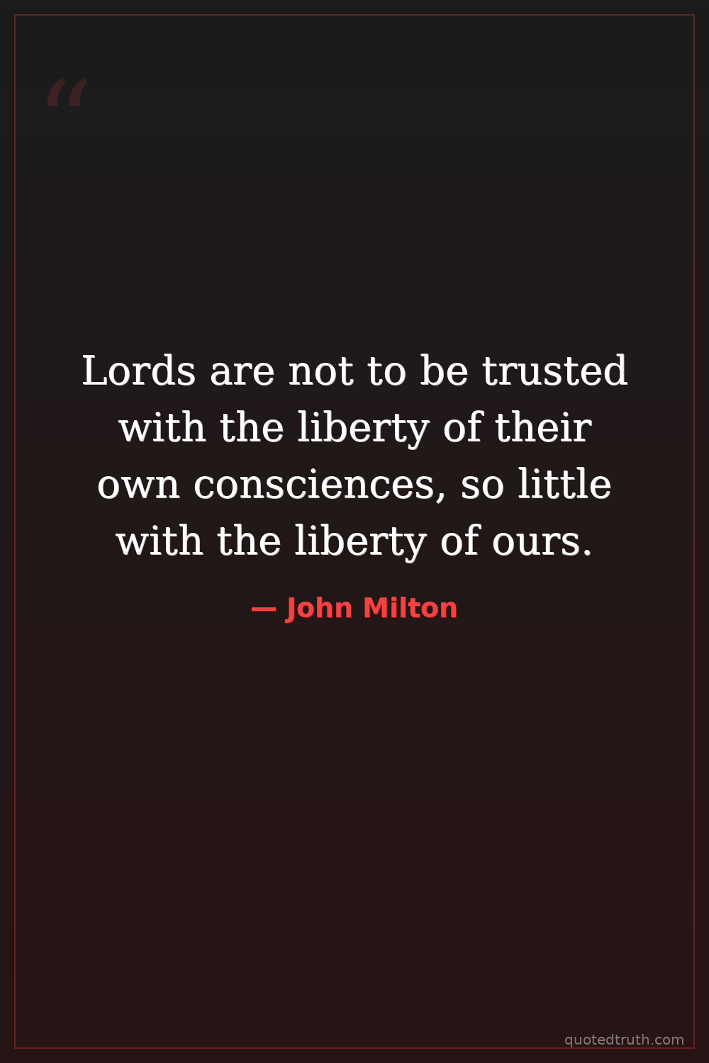 Lords are not to be trusted with the liberty of their own consciences, so little with the liberty of ours.