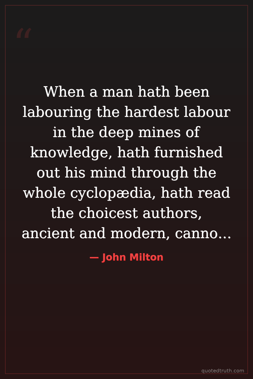 When a man hath been labouring the hardest labour in the deep mines of knowledge, hath furnished out his mind through the whole cyclopædia, hath read the choicest authors, ancient and modern, cannot be content with this, but that he must be made a divorce-court man, to be an usher of the court of justice, and to sit in the seat of judgment, to determine upon the matter of divorce, and to be a judge between husband and wife.
