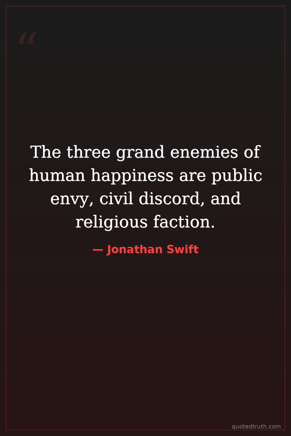 The three grand enemies of human happiness are public envy, civil discord, and religious faction.