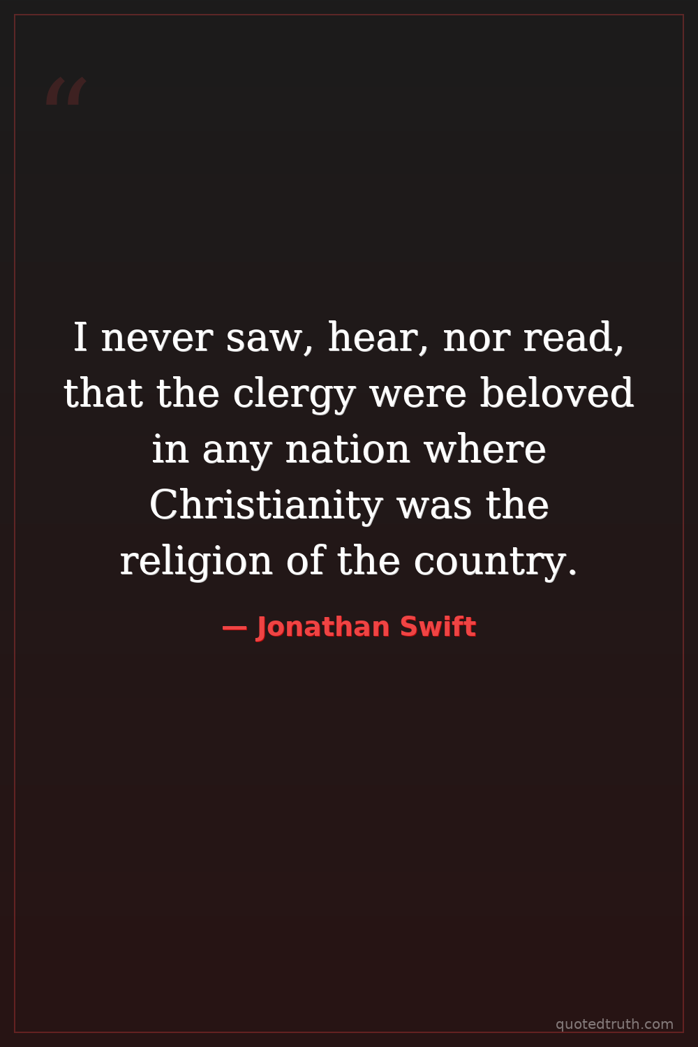 I never saw, hear, nor read, that the clergy were beloved in any nation where Christianity was the religion of the country.