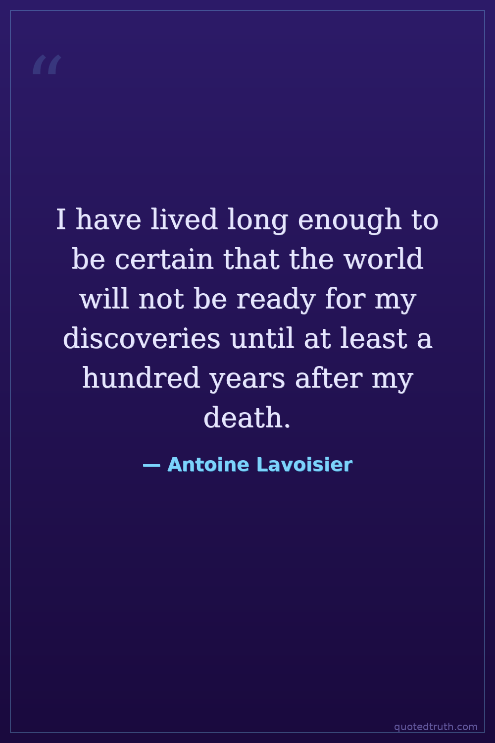 I have lived long enough to be certain that the world will not be ready for my discoveries until at least a hundred years after my death.