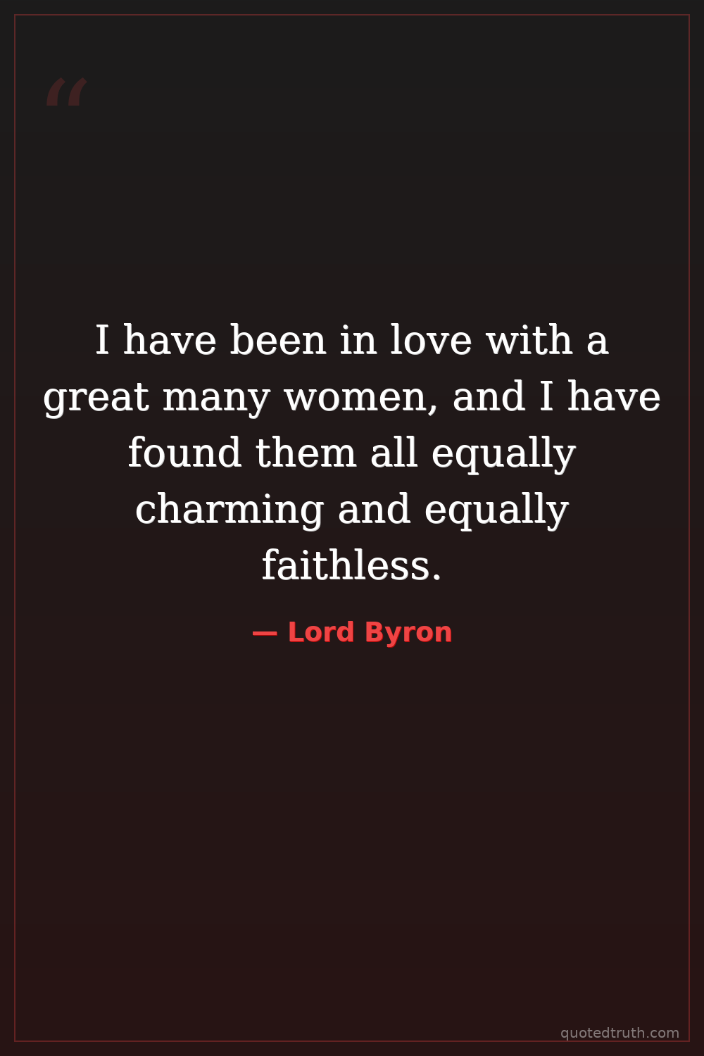 I have been in love with a great many women, and I have found them all equally charming and equally faithless.
