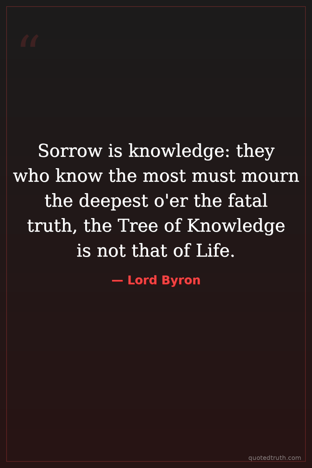 Sorrow is knowledge: they who know the most must mourn the deepest o'er the fatal truth, the Tree of Knowledge is not that of Life.