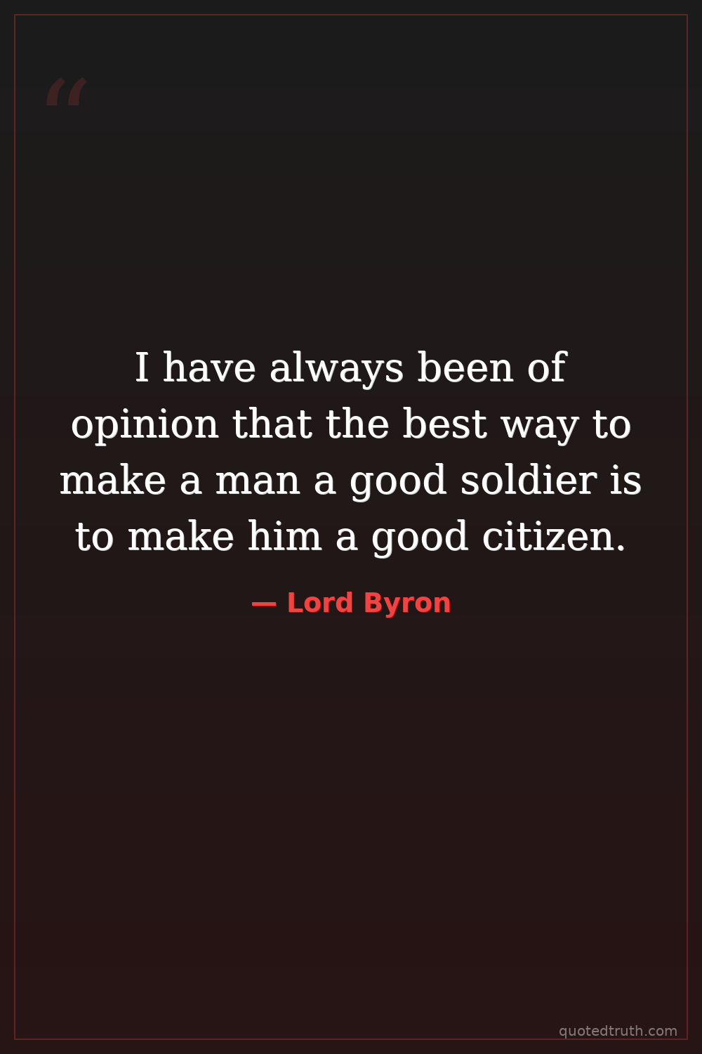 I have always been of opinion that the best way to make a man a good soldier is to make him a good citizen.