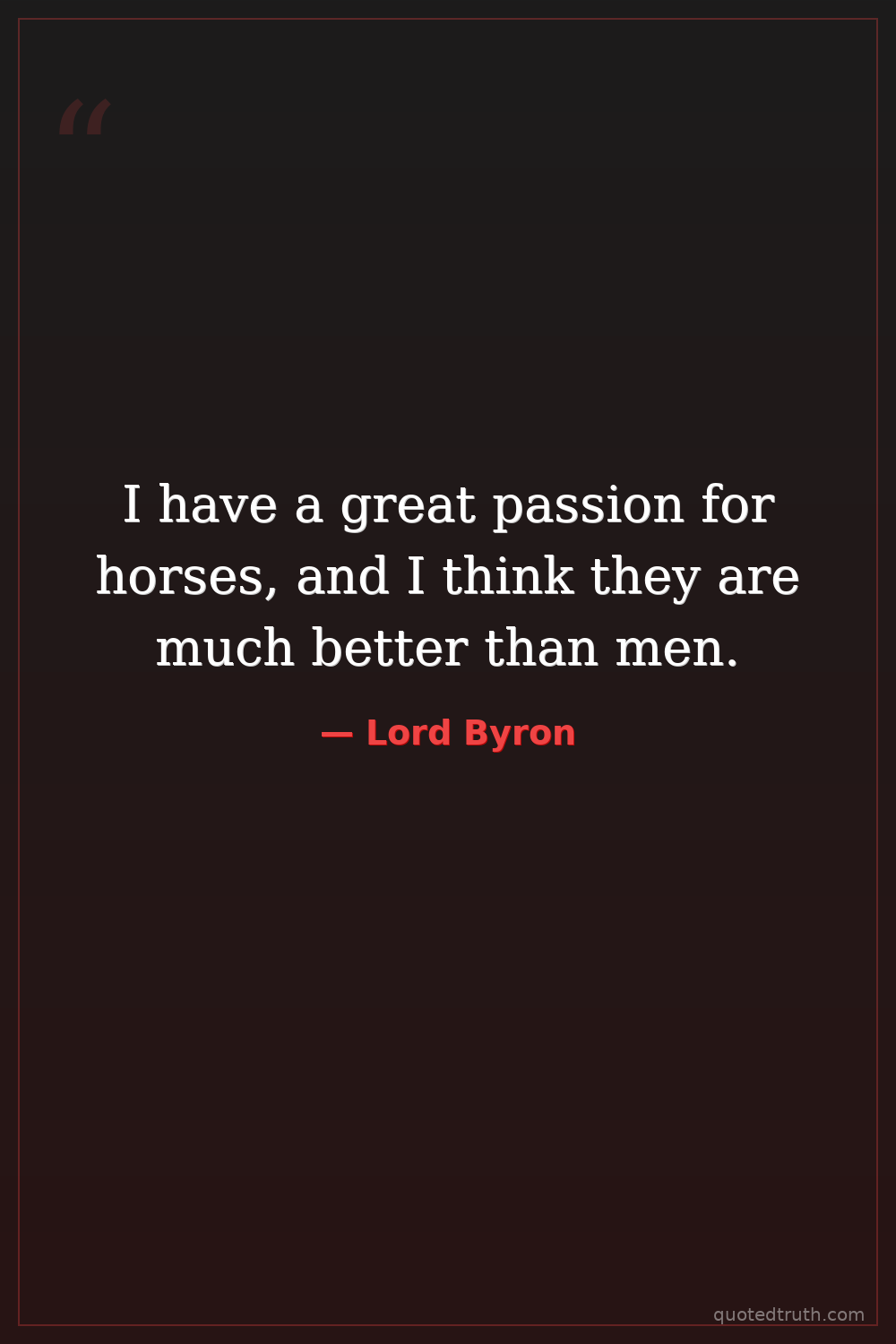 I have a great passion for horses, and I think they are much better than men.