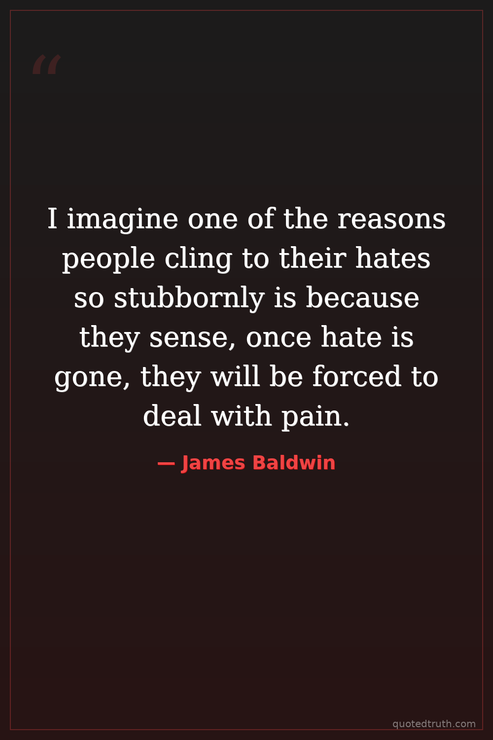 I imagine one of the reasons people cling to their hates so stubbornly is because they sense, once hate is gone, they will be forced to deal with pain.