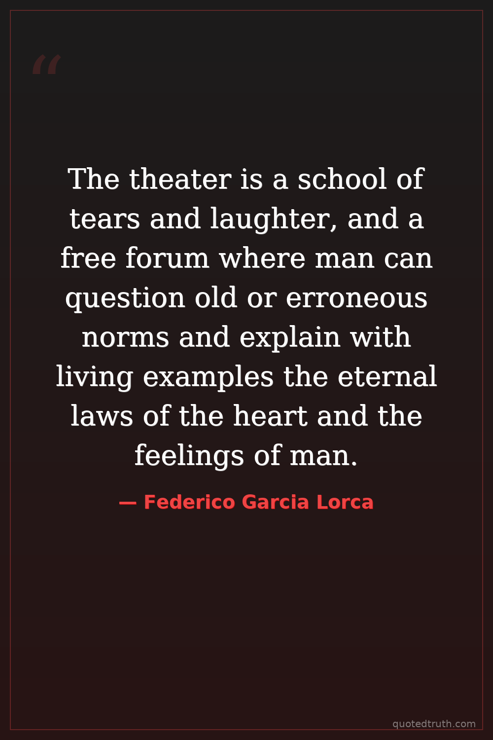 The theater is a school of tears and laughter, and a free forum where man can question old or erroneous norms and explain with living examples the eternal laws of the heart and the feelings of man.