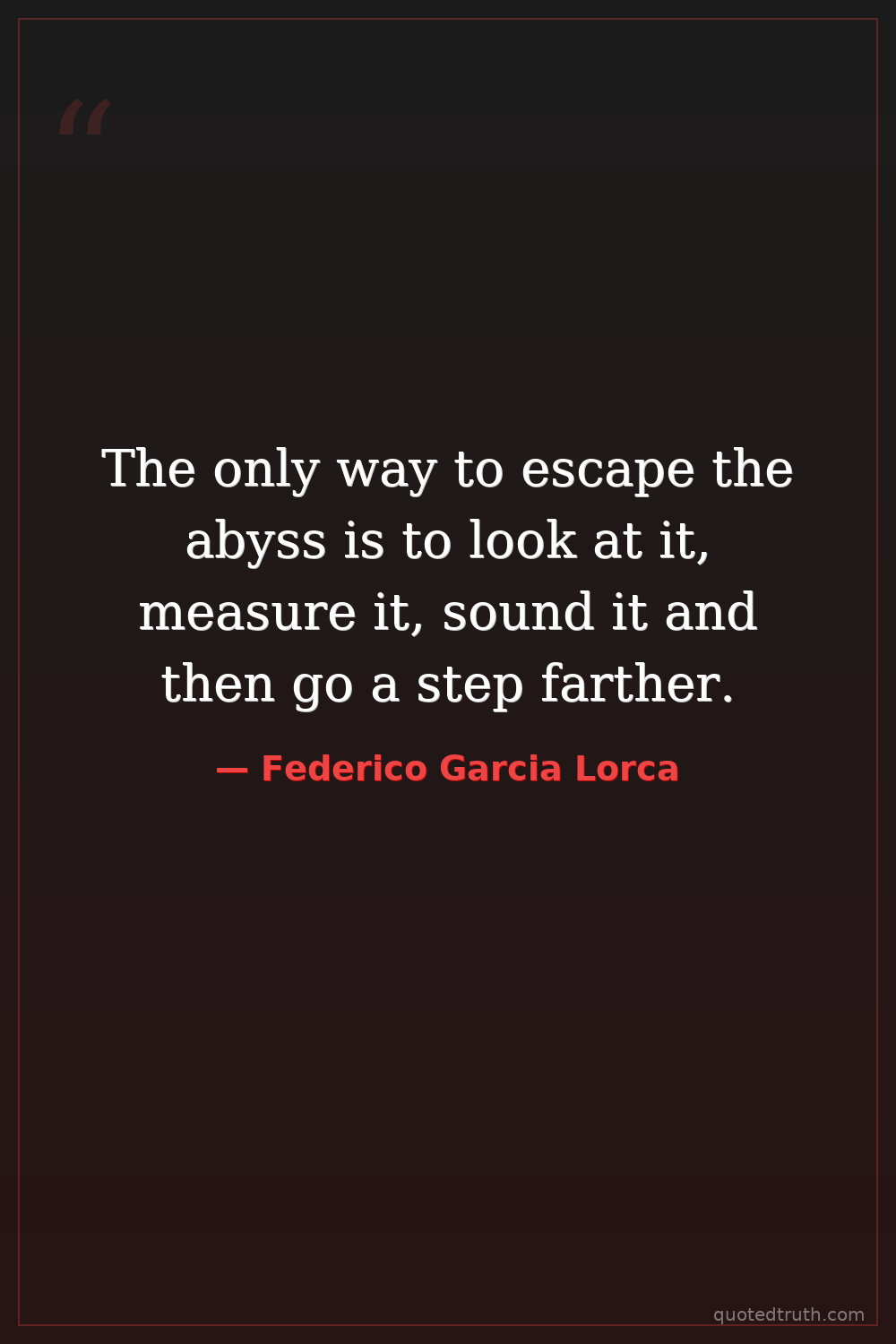 The only way to escape the abyss is to look at it, measure it, sound it and then go a step farther.