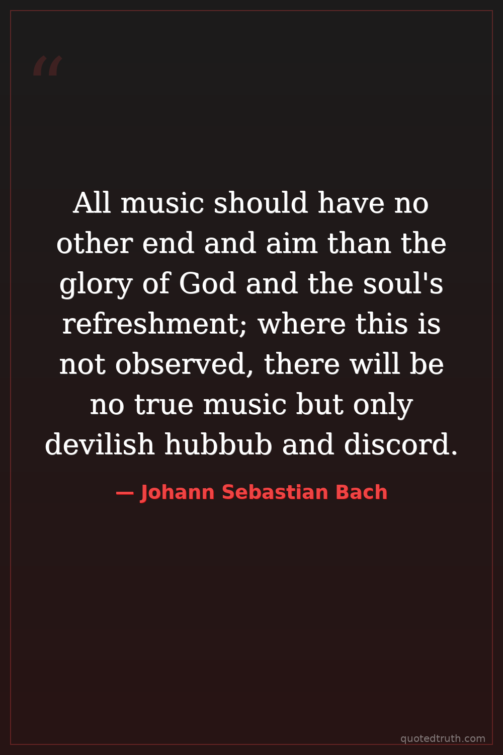 All music should have no other end and aim than the glory of God and the soul's refreshment; where this is not observed, there will be no true music but only devilish hubbub and discord.