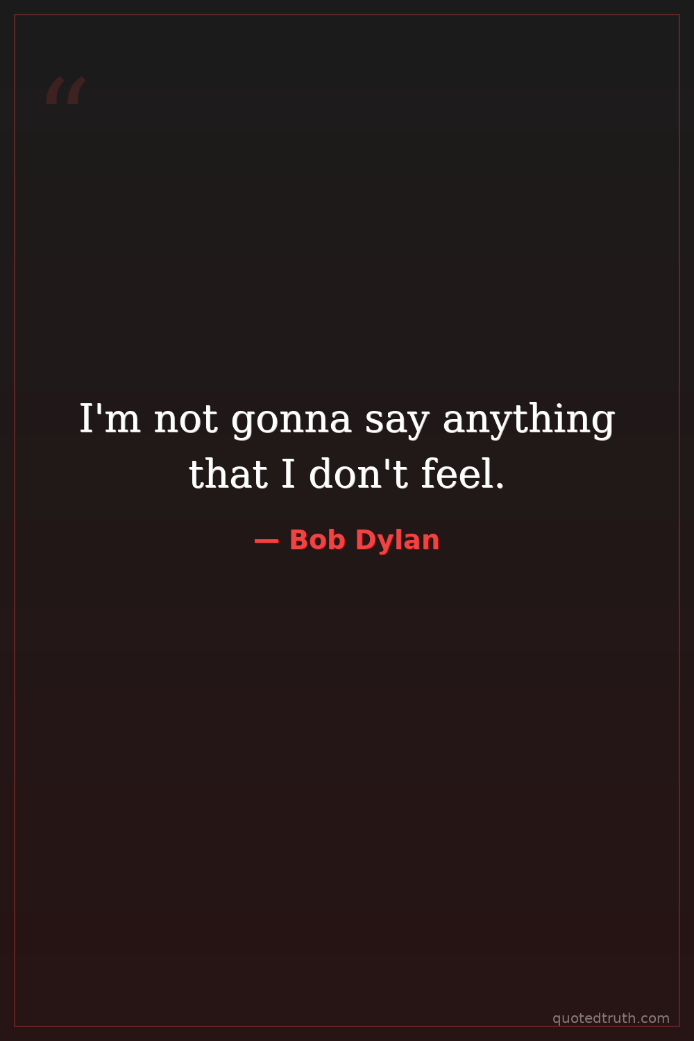 I'm not gonna say anything that I don't feel.