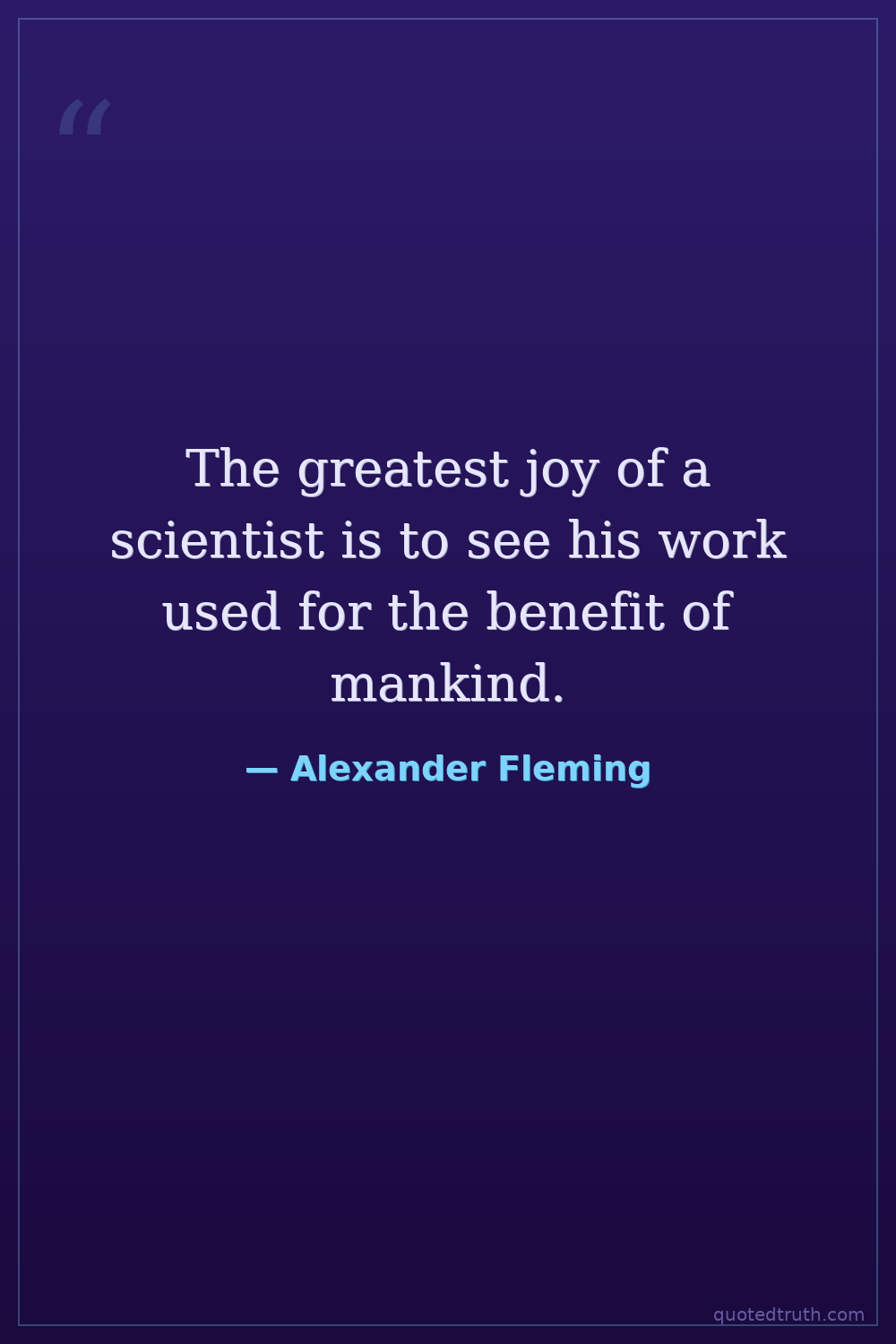 The greatest joy of a scientist is to see his work used for the benefit of mankind.
