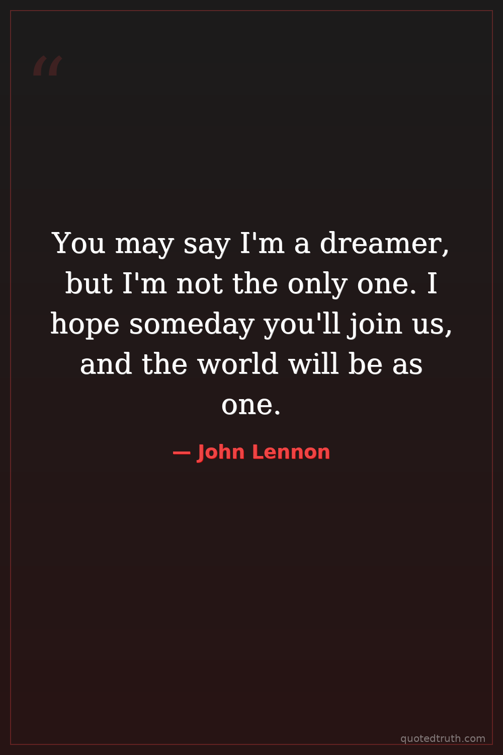 You may say I'm a dreamer, but I'm not the only one. I hope someday you'll join us, and the world will be as one.