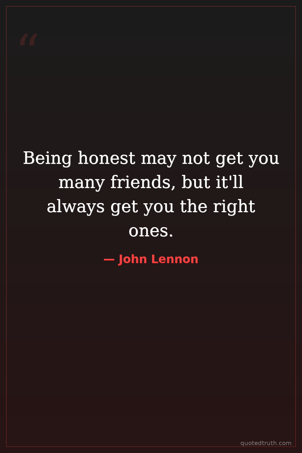 Being honest may not get you many friends, but it'll always get you the right ones.