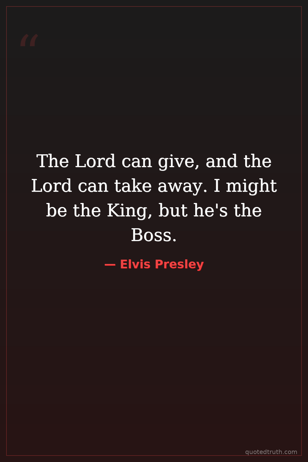 The Lord can give, and the Lord can take away. I might be the King, but he's the Boss.