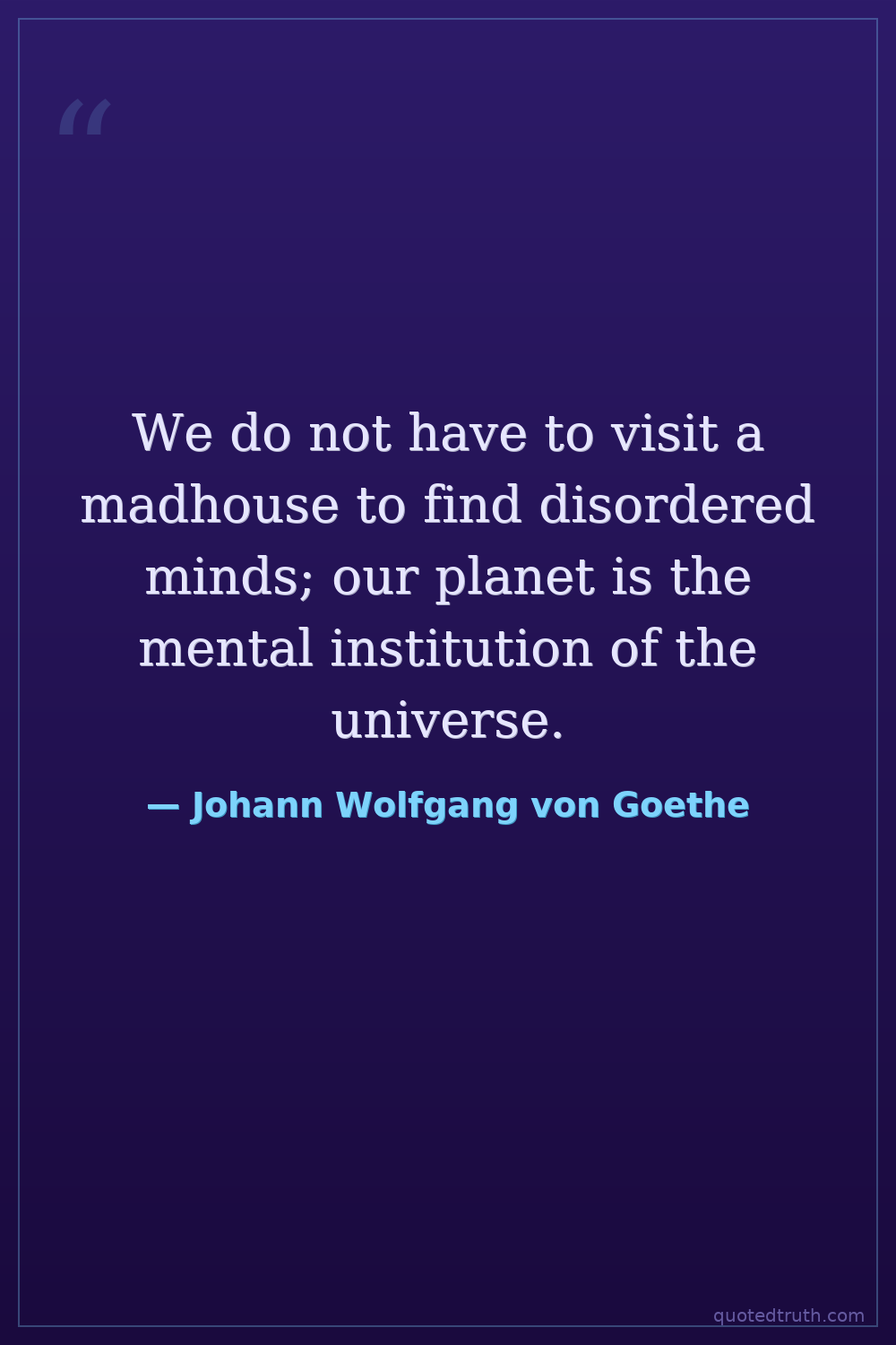 We do not have to visit a madhouse to find disordered minds; our planet is the mental institution of the universe.