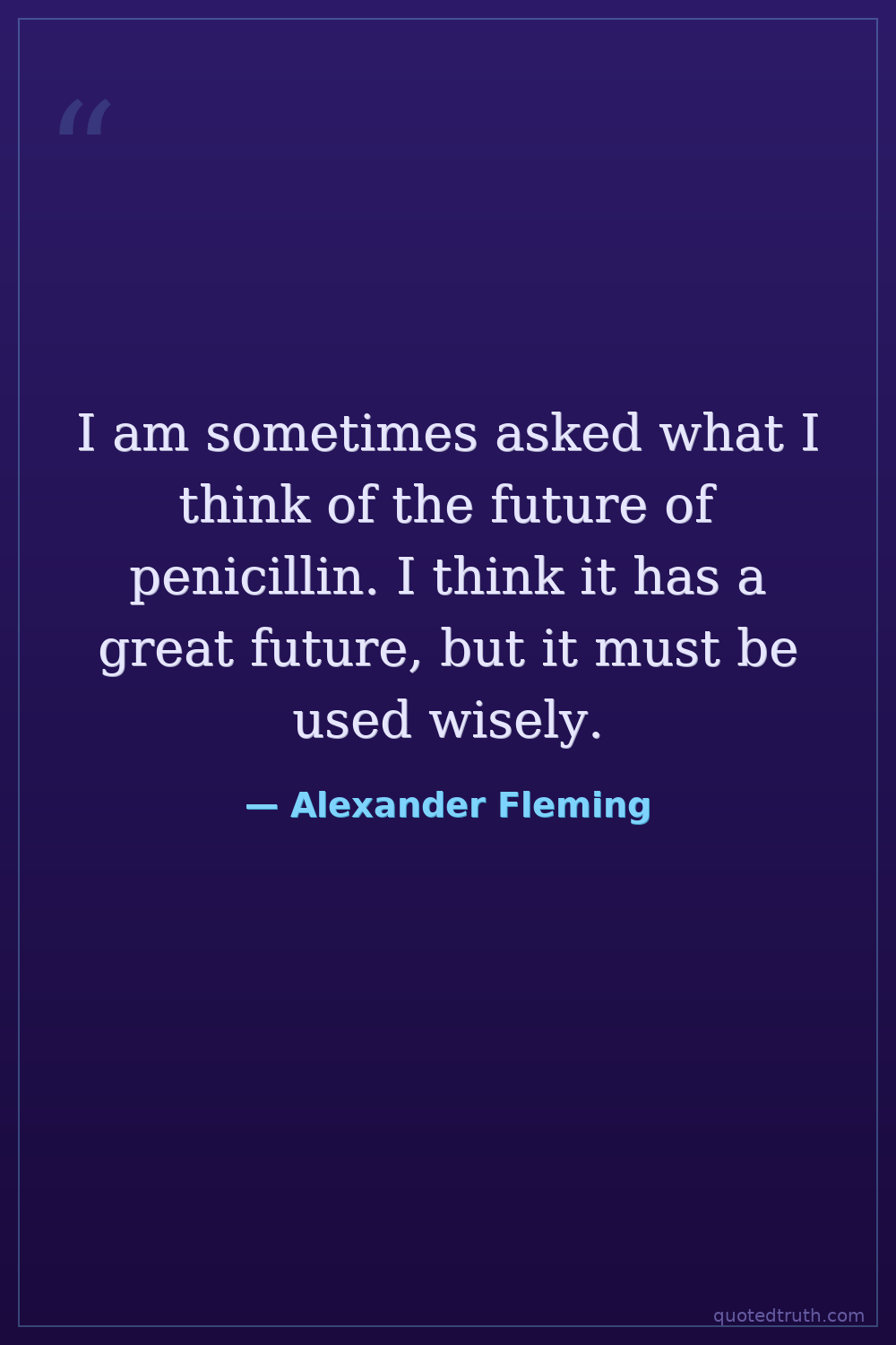 I am sometimes asked what I think of the future of penicillin. I think it has a great future, but it must be used wisely.