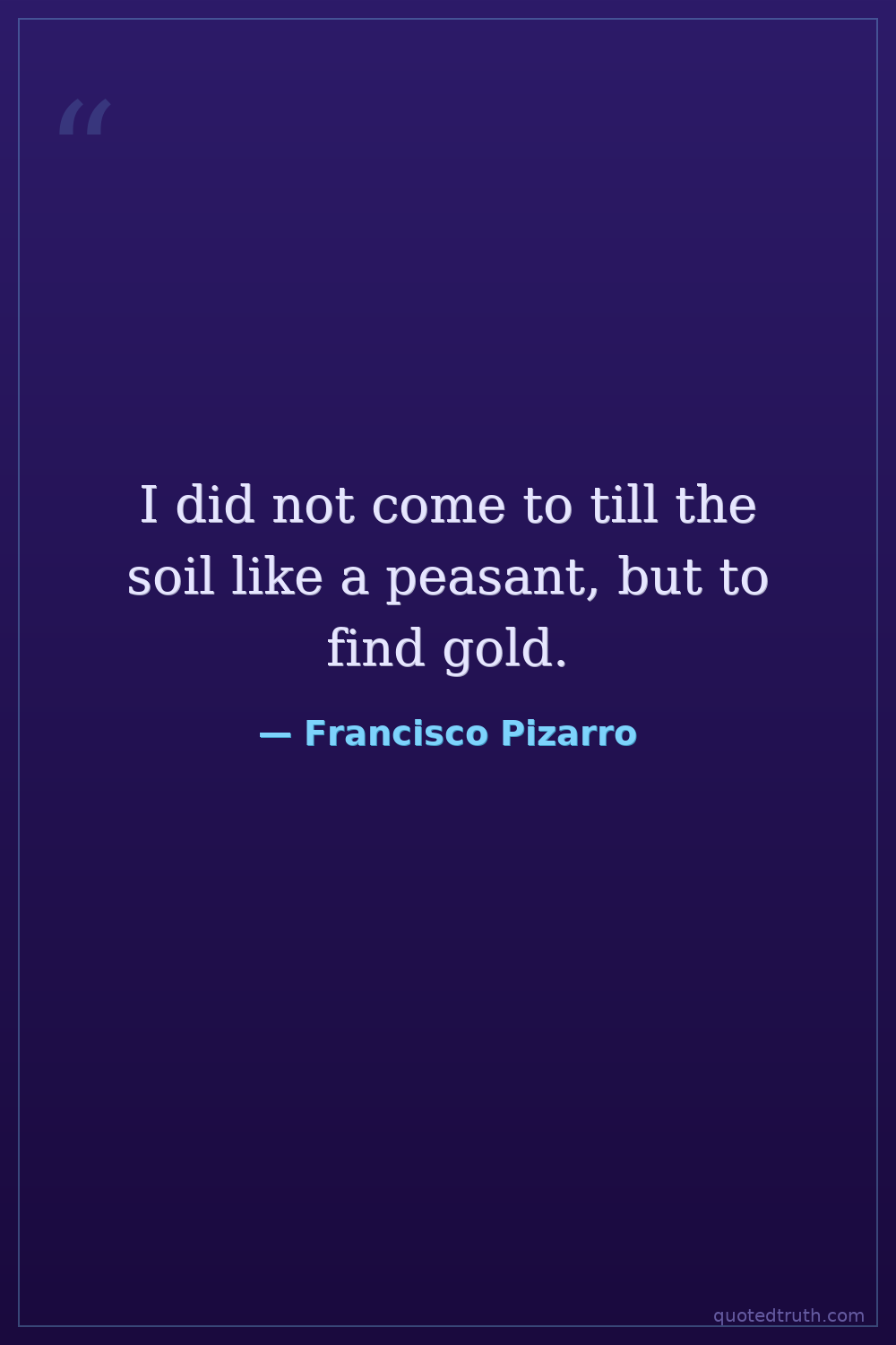 I did not come to till the soil like a peasant, but to find gold.