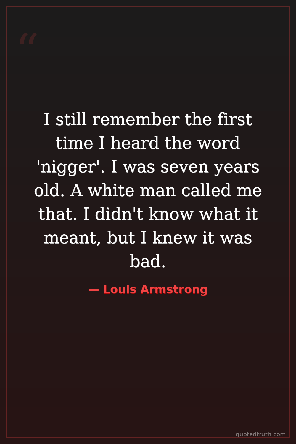 I still remember the first time I heard the word 'nigger'. I was seven years old. A white man called me that. I didn't know what it meant, but I knew it was bad.