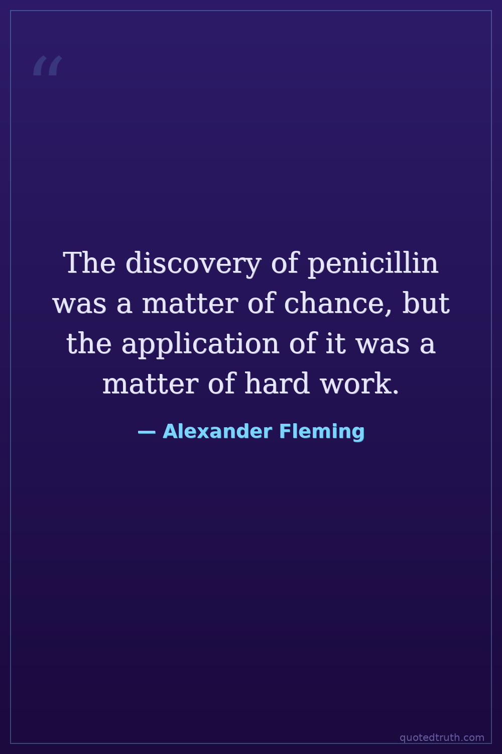 The discovery of penicillin was a matter of chance, but the application of it was a matter of hard work.