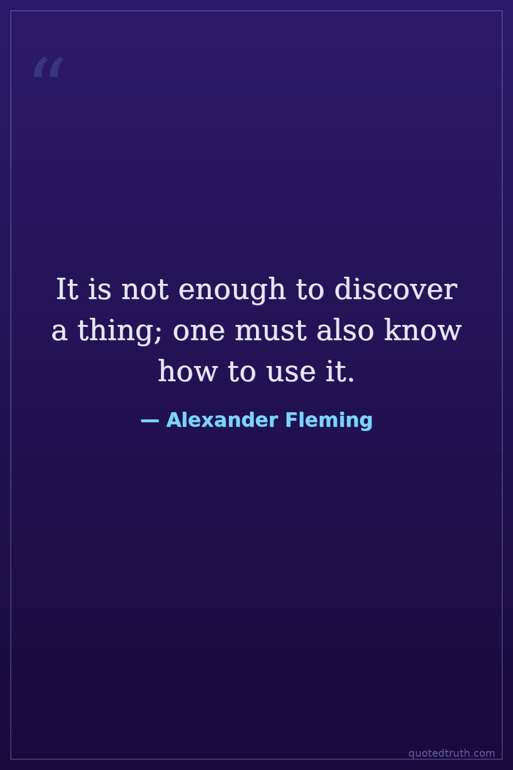 It is not enough to discover a thing; one must also know how to use it.