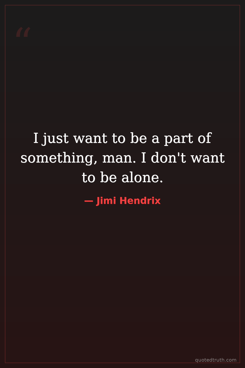 I just want to be a part of something, man. I don't want to be alone.