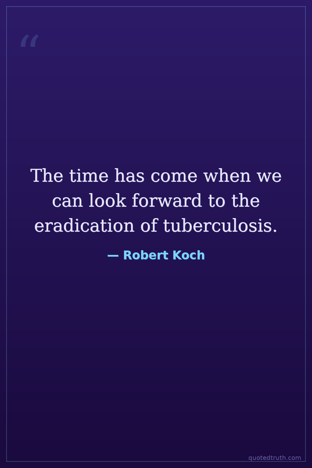 The time has come when we can look forward to the eradication of tuberculosis.