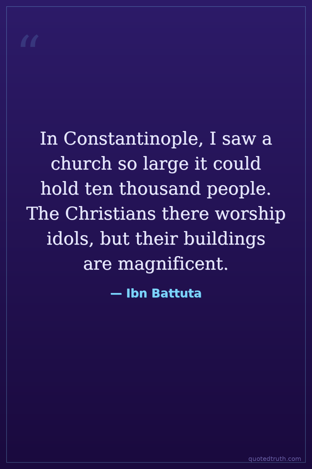 In Constantinople, I saw a church so large it could hold ten thousand people. The Christians there worship idols, but their buildings are magnificent.