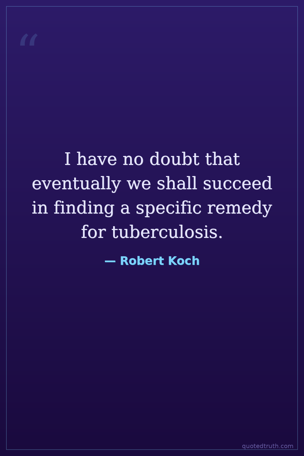 I have no doubt that eventually we shall succeed in finding a specific remedy for tuberculosis.
