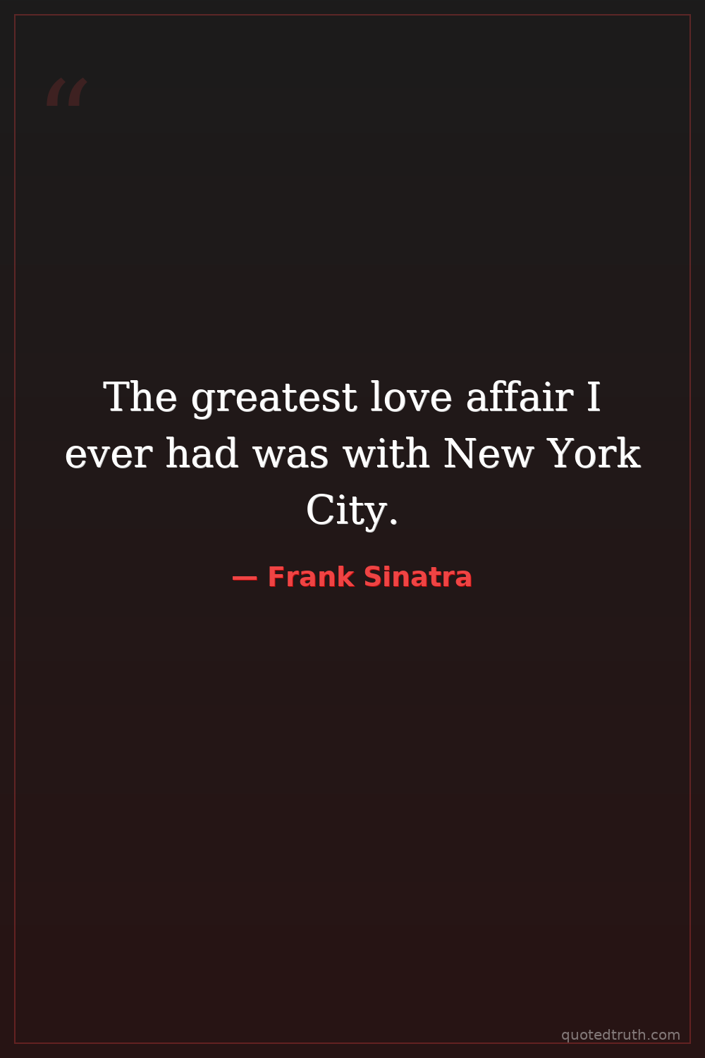 The greatest love affair I ever had was with New York City.