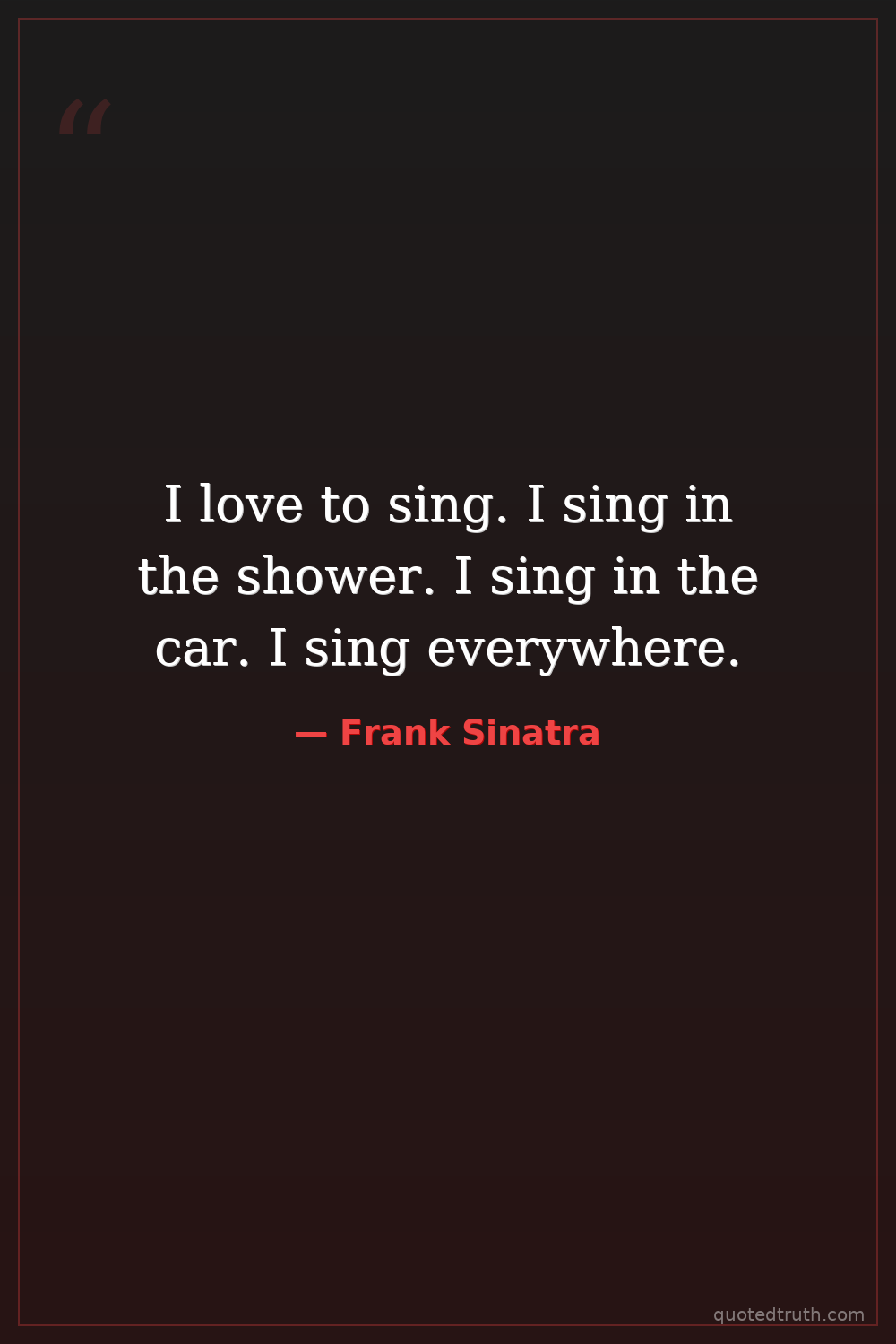 I love to sing. I sing in the shower. I sing in the car. I sing everywhere.