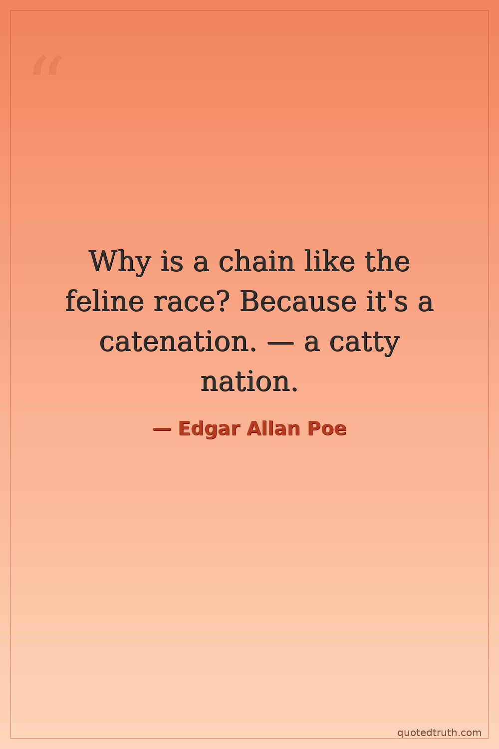 Why is a chain like the feline race? Because it's a catenation. — a catty nation.