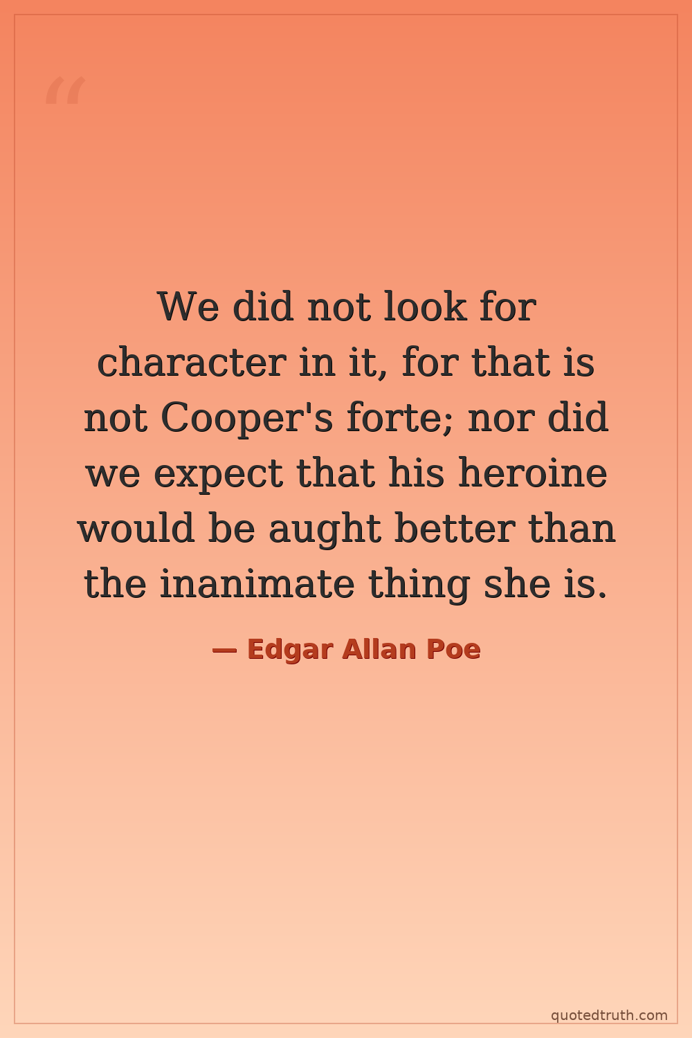 We did not look for character in it, for that is not Cooper's forte; nor did we expect that his heroine would be aught better than the inanimate thing she is.
