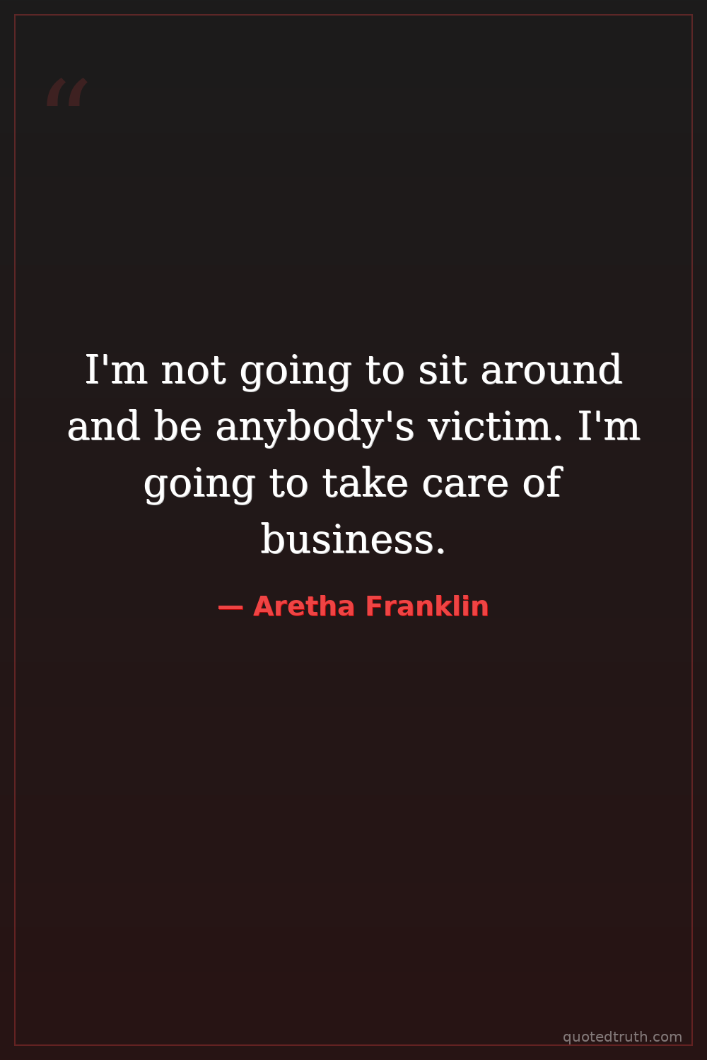 I'm not going to sit around and be anybody's victim. I'm going to take care of business.
