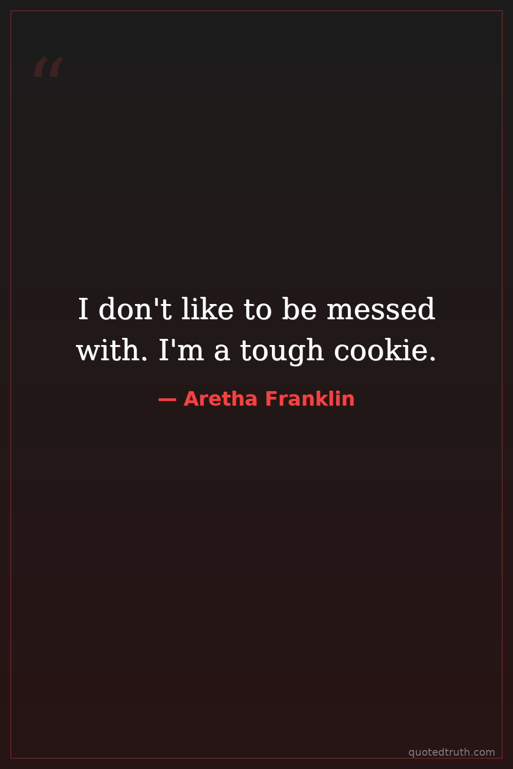 I don't like to be messed with. I'm a tough cookie.