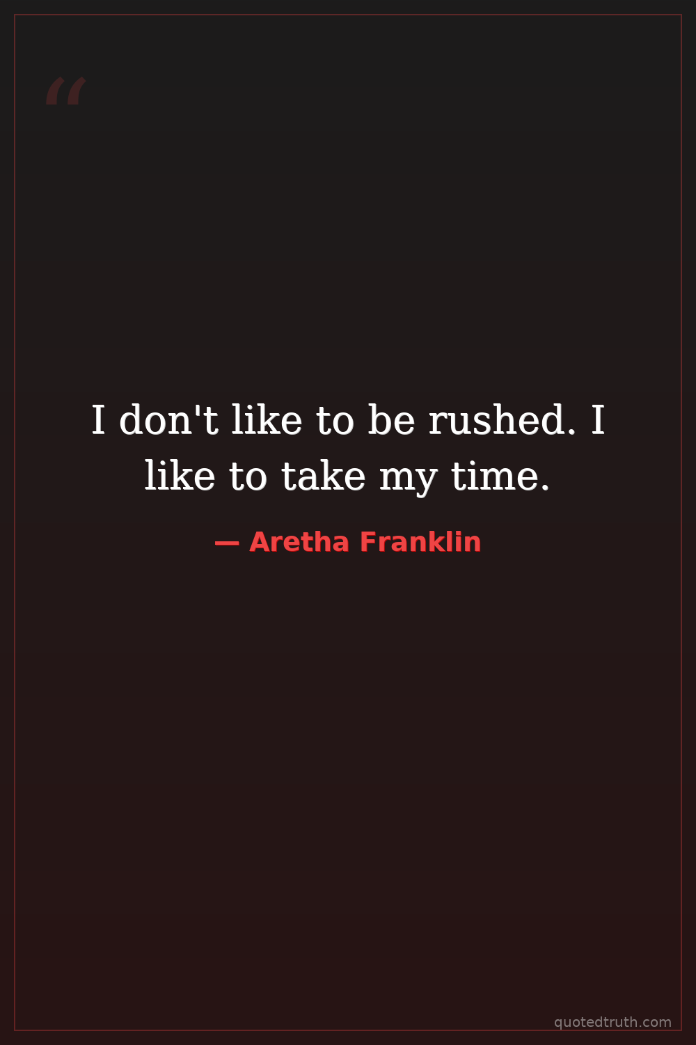 I don't like to be rushed. I like to take my time.