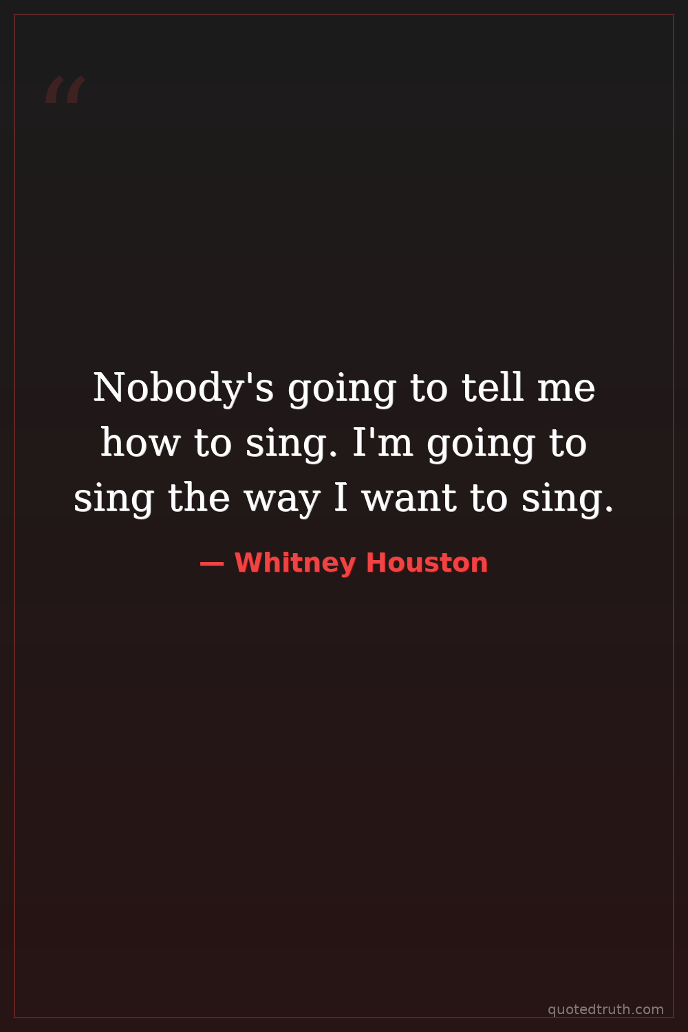 Nobody's going to tell me how to sing. I'm going to sing the way I want to sing.