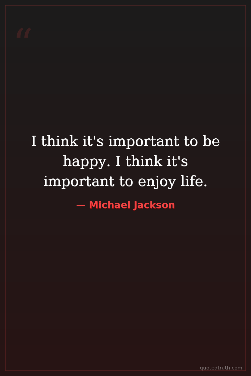 I think it's important to be happy. I think it's important to enjoy life.