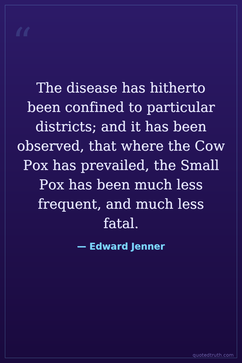 The disease has hitherto been confined to particular districts; and it has been observed, that where the Cow Pox has prevailed, the Small Pox has been much less frequent, and much less fatal.