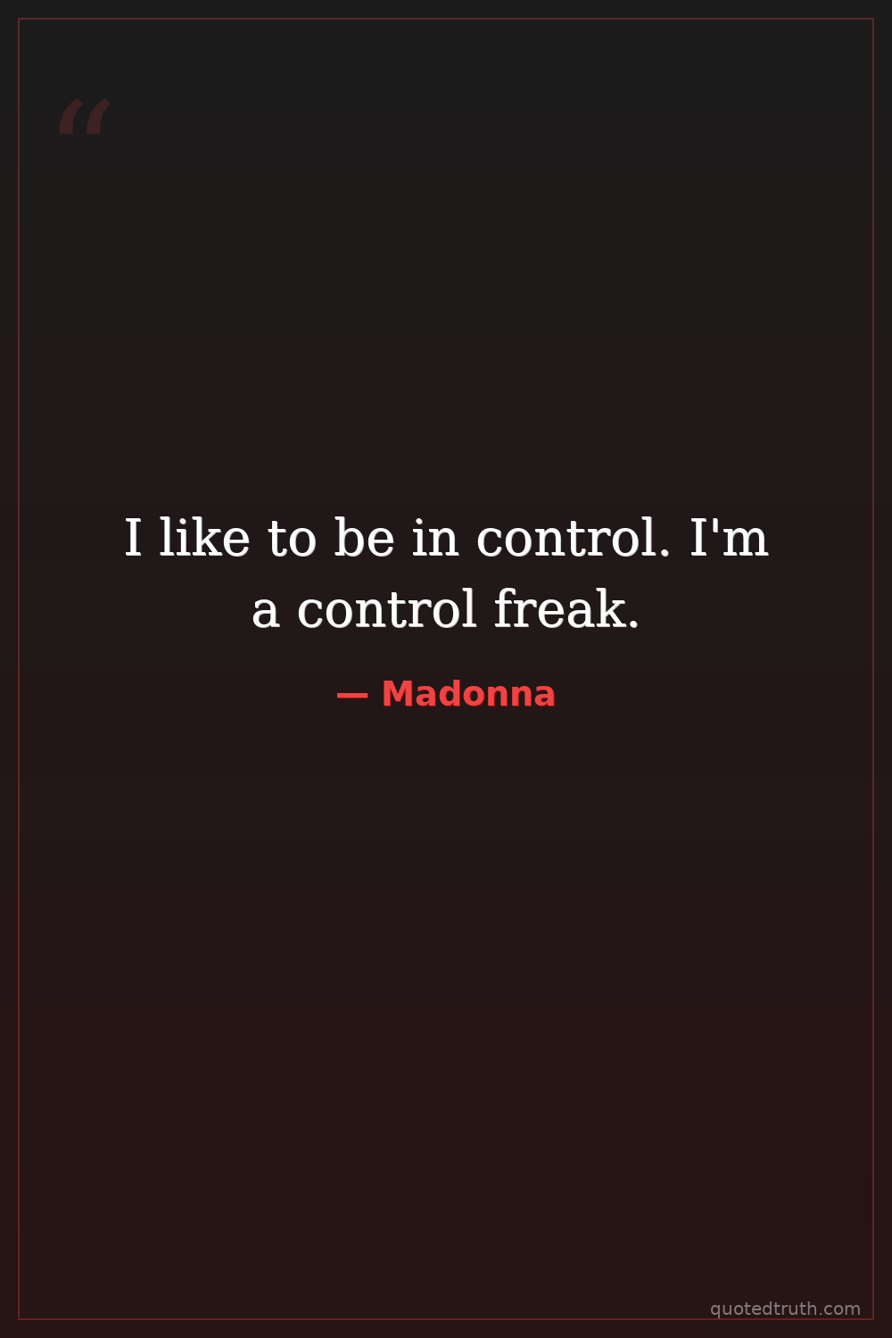 I like to be in control. I'm a control freak.