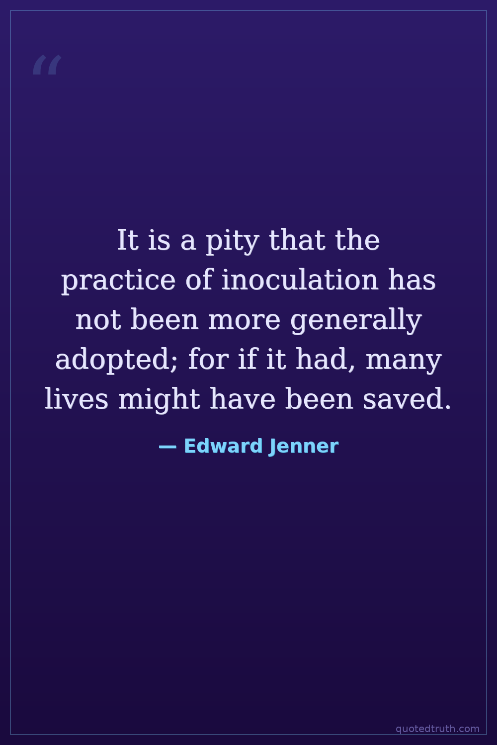 It is a pity that the practice of inoculation has not been more generally adopted; for if it had, many lives might have been saved.