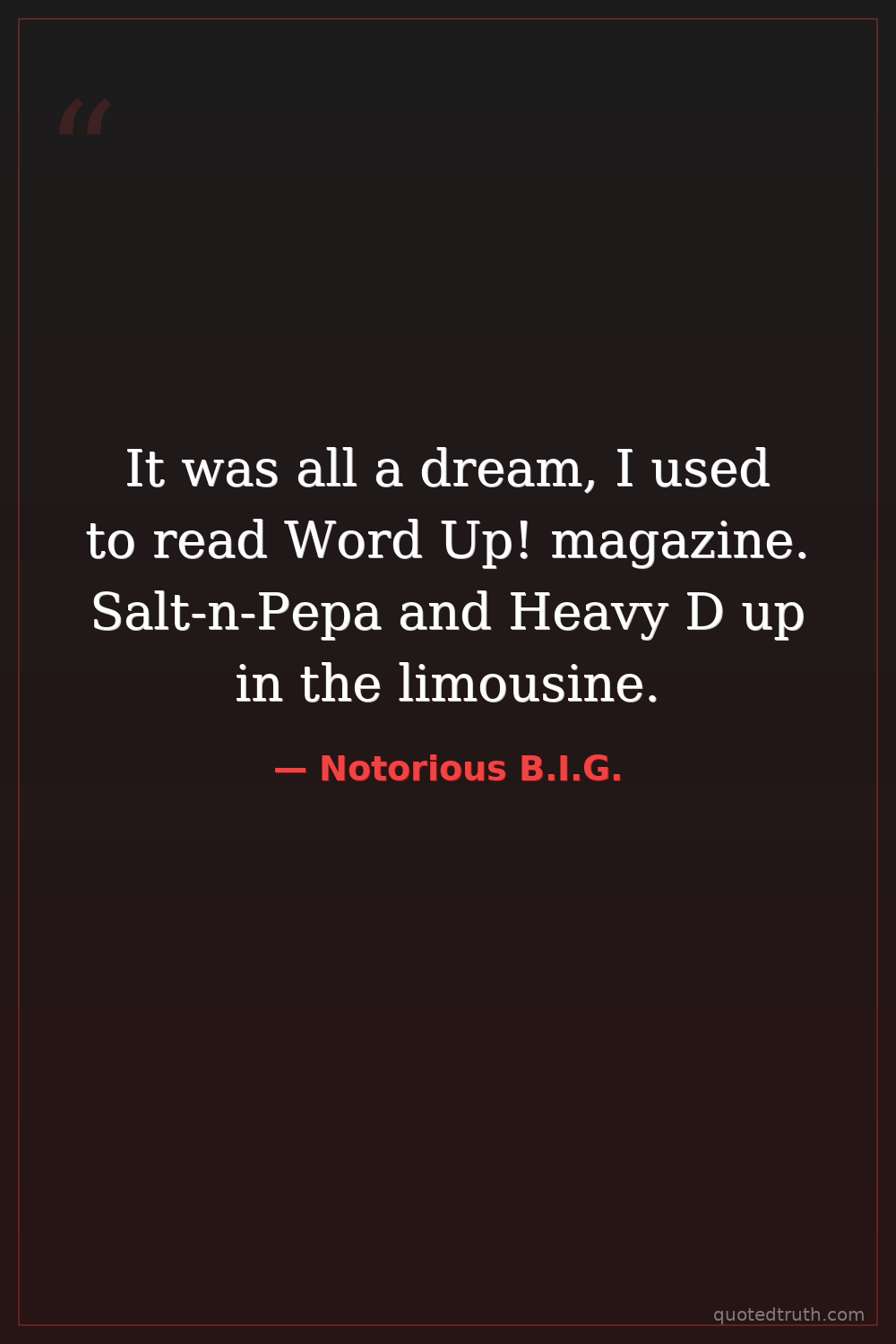It was all a dream, I used to read Word Up! magazine. Salt-n-Pepa and Heavy D up in the limousine.