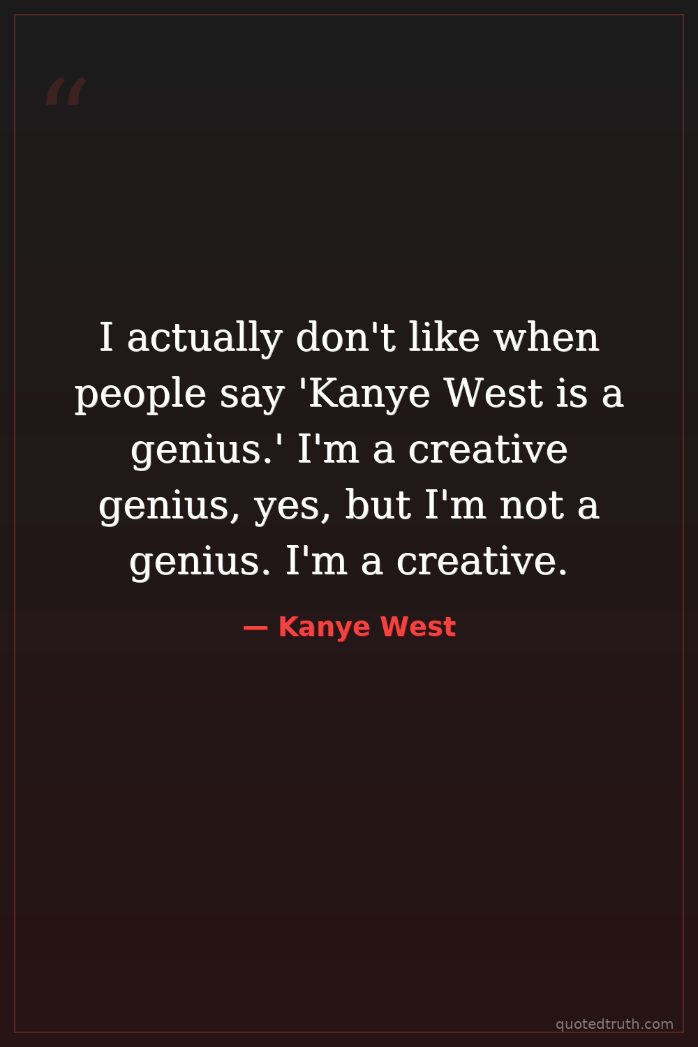 I actually don't like when people say 'Kanye West is a genius.' I'm a creative genius, yes, but I'm not a genius. I'm a creative.