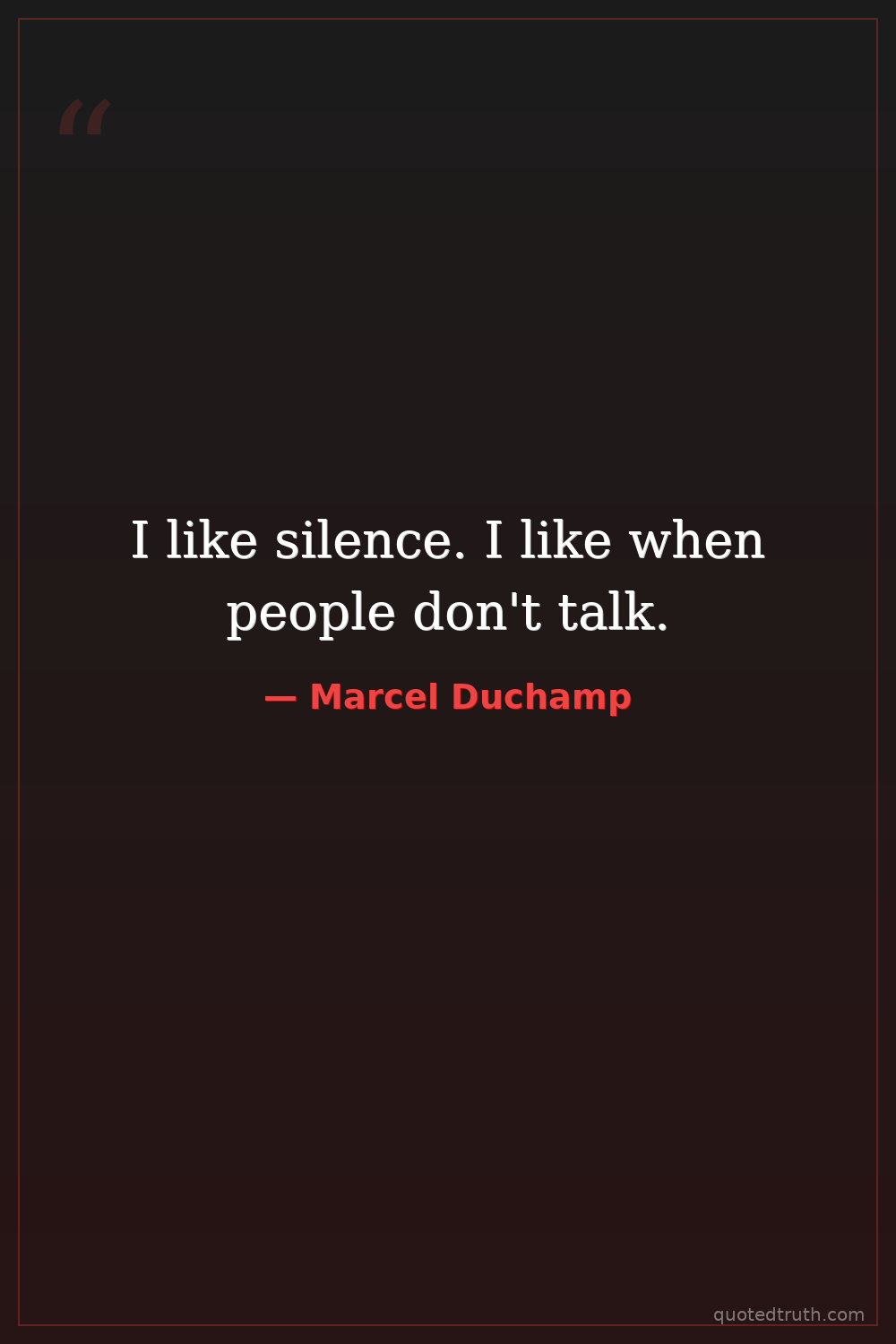 I like silence. I like when people don't talk.
