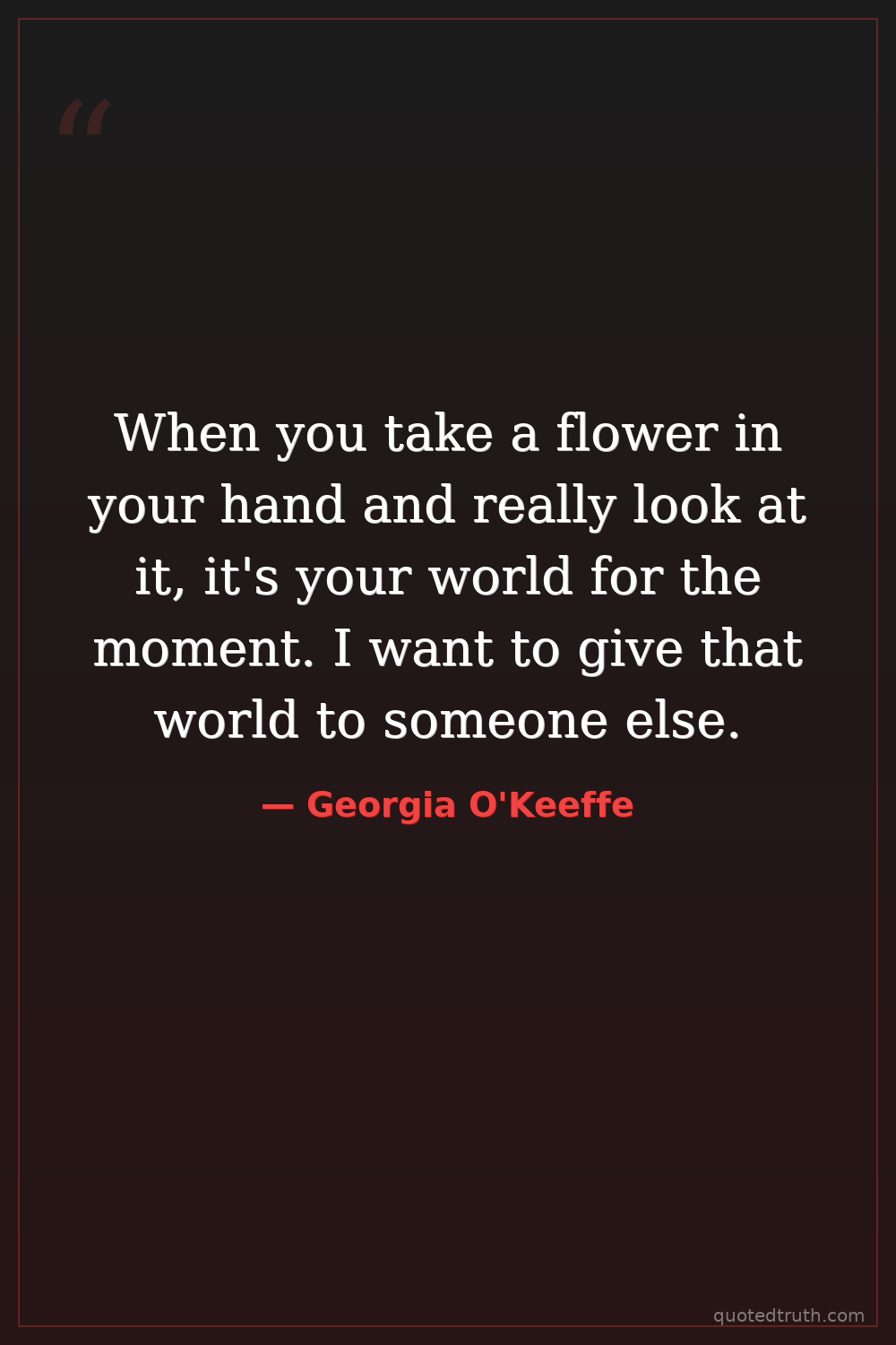 When you take a flower in your hand and really look at it, it's your world for the moment. I want to give that world to someone else.