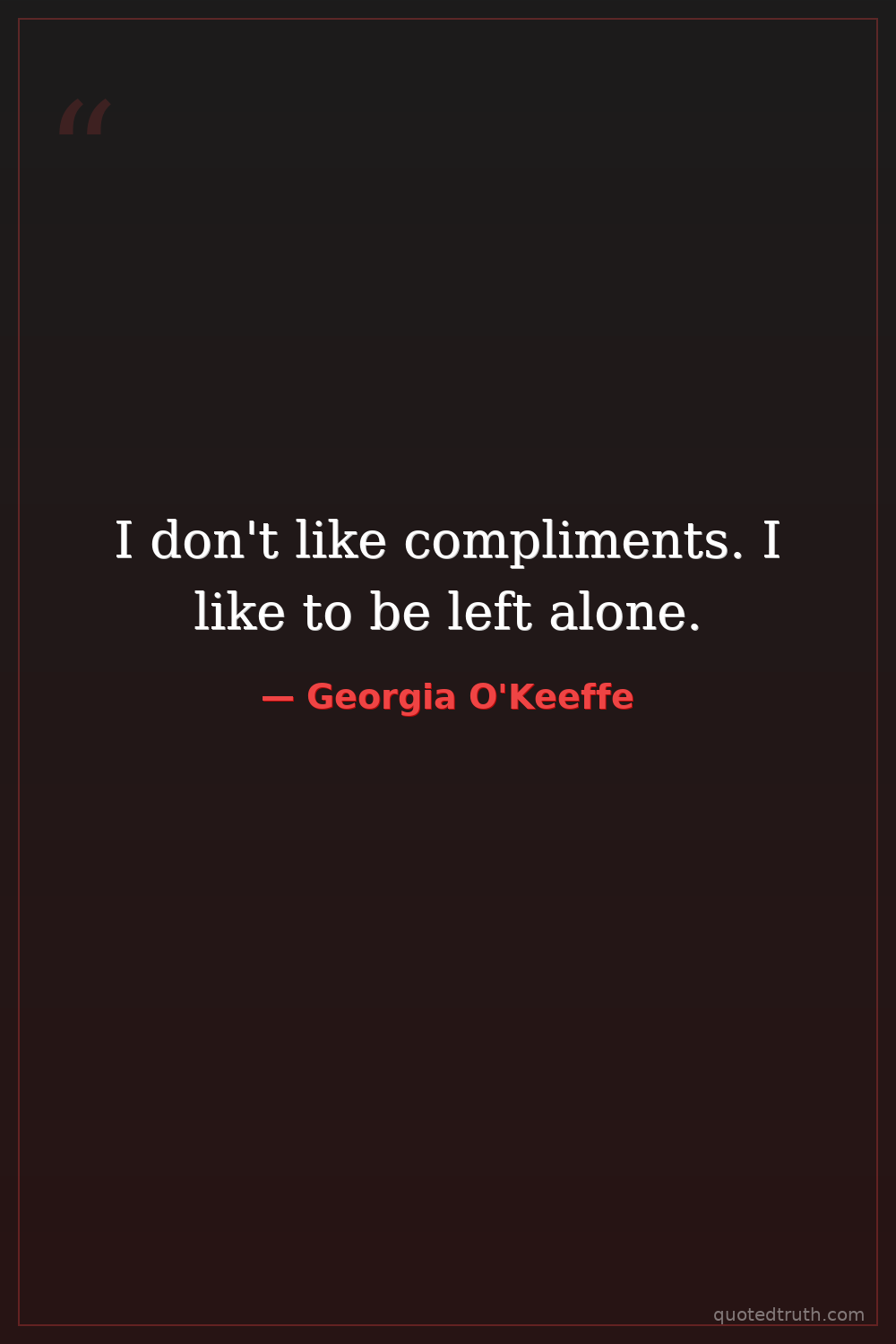 I don't like compliments. I like to be left alone.