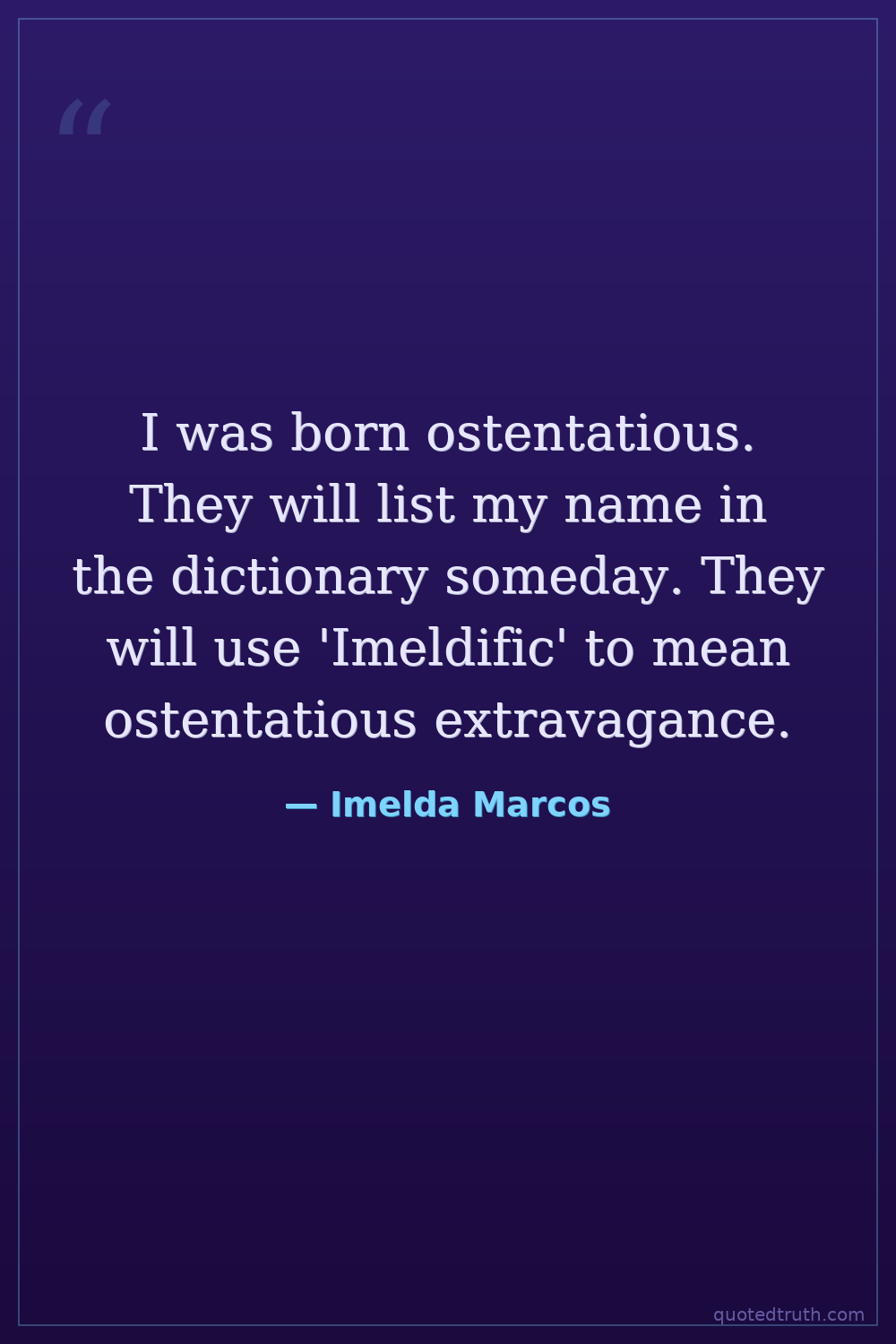 I was born ostentatious. They will list my name in the dictionary someday. They will use 'Imeldific' to mean ostentatious extravagance.