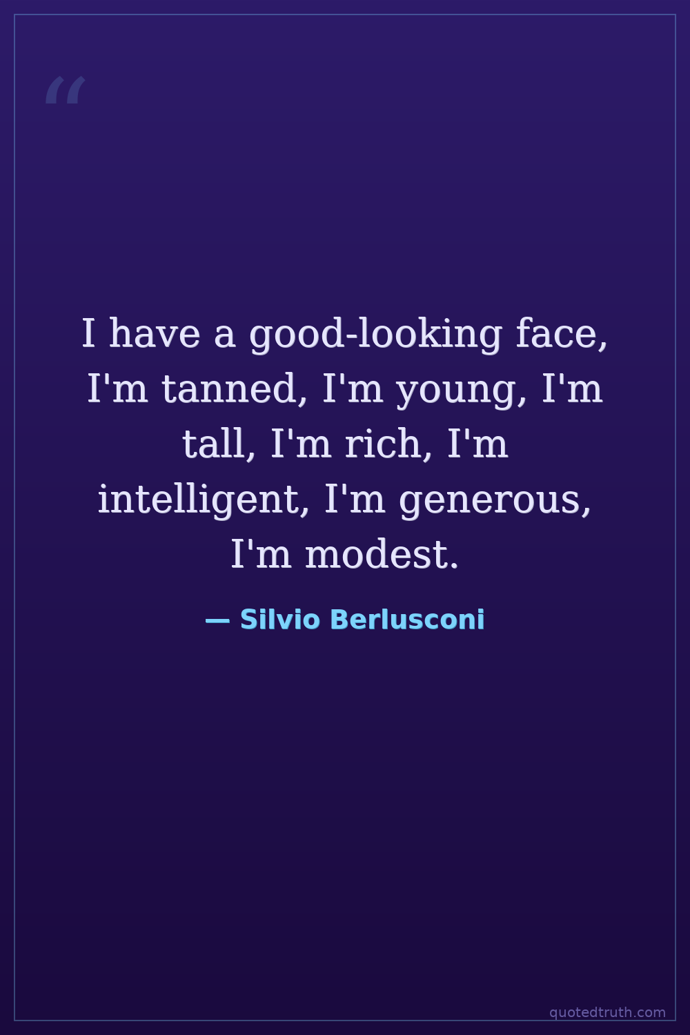 I have a good-looking face, I'm tanned, I'm young, I'm tall, I'm rich, I'm intelligent, I'm generous, I'm modest.