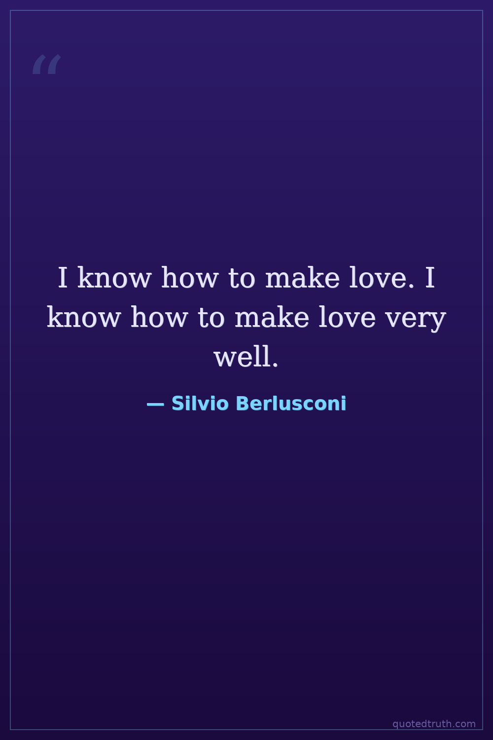 I know how to make love. I know how to make love very well.