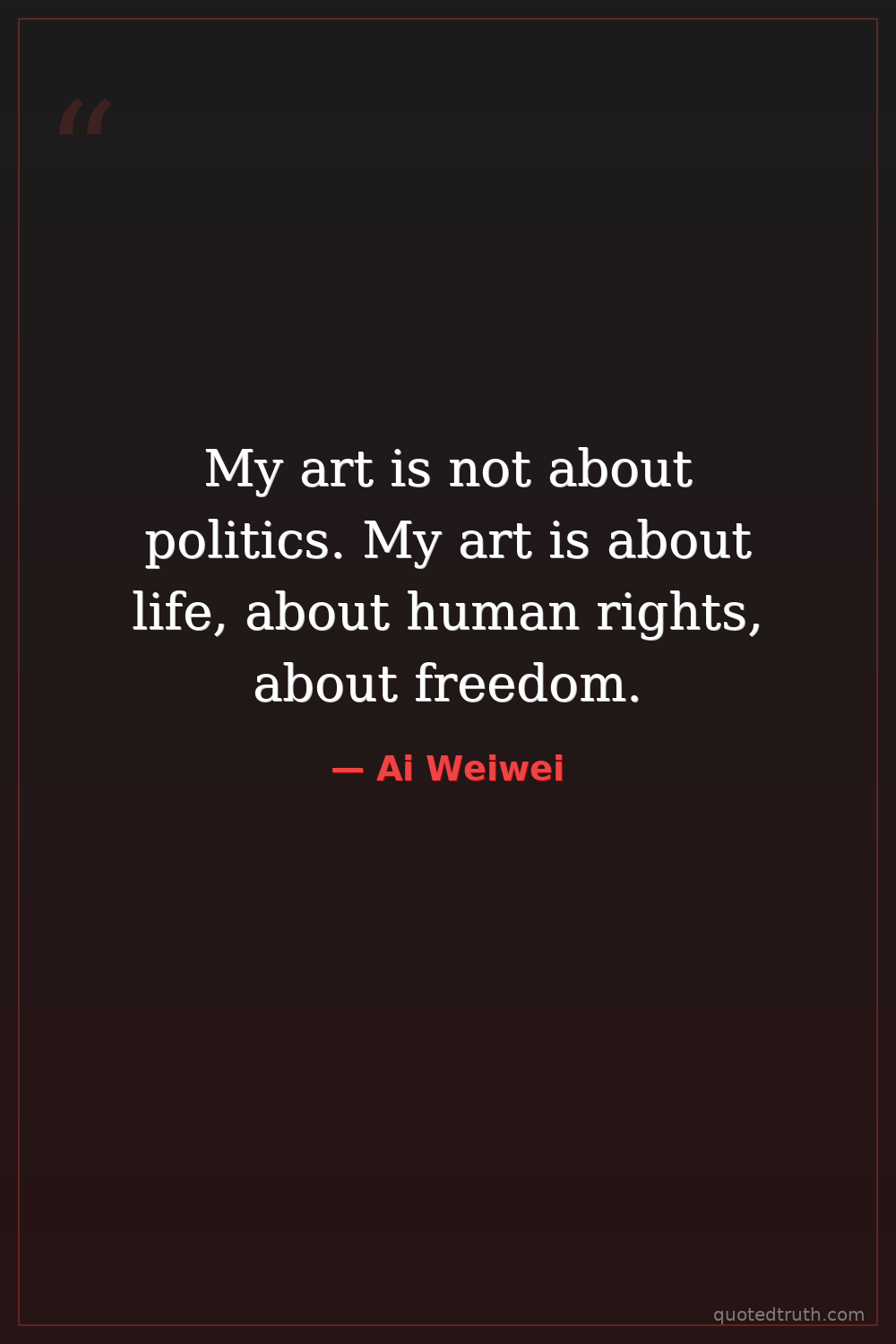 My art is not about politics. My art is about life, about human rights, about freedom.